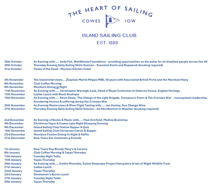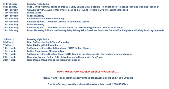 6th February 2025Get set for the Island Sailing Club’s 2025 seasonApril will see the launch or the Island Sailing Clubs race seaon. The Tuesday Evening Race Series is a popular format attracting…Read more